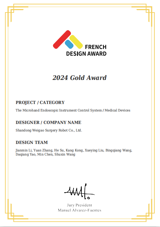 此次荣获三大国际设计奖项,标志着威高妙手四臂手术机器人在技术创新、产品设计与理念上获得了国际社会的广泛认可。威高外科将继续坚持以创新为核心驱动力,加大研发投入,不断推动微创手术技术的进步,致力于为全球外科医疗事业的发展贡献智慧与力量。